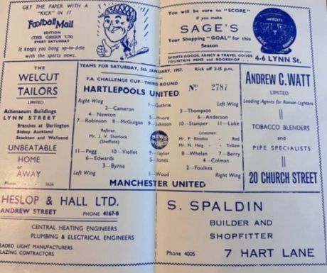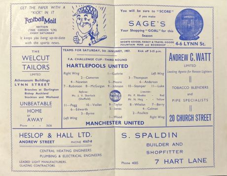 Post subject: Hartlepools United v Manchester United Fa Cup 1957. |