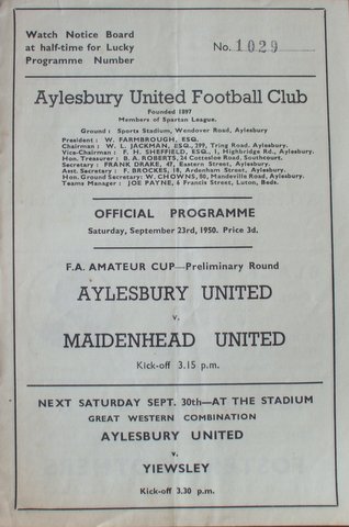 Prior to 2004, I had only ever come across one Maidenhead United home programme from 1945/46 season, but a chap IIRC called Paul White from Cornwall put one onto a well known auction site and I was subsquently able to negotiate a price for all of the other copies he had, for which I was extremely grateful.