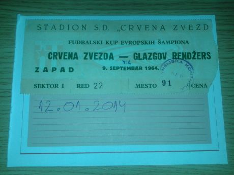 hi, i am selling ticket red star vs rangers 1964 in very good condition, if anybody is interested can contact me on pm, i will soon put scan of ticket so condition of the ticket could be seen |
