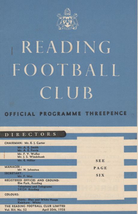 I have all the programmes but missing a report for the final v Reading played 30th April 1958