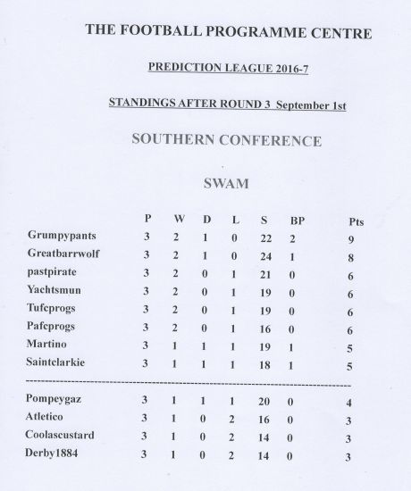 League Tables after Round 3.
