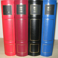 They are available in Red, Royal Blue, Black or Maroon and come with a free professionally printed gold on black label to affix to the spine.
