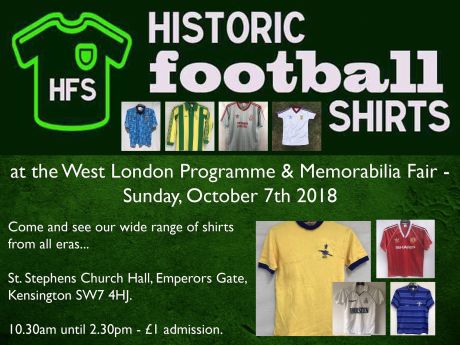 The next fair I shall be standing at is the WEST LONDON FOOTBALL PROGRAMME & MEMORABILIA FAIR on SUNDAY OCTOBER 7 at St. Stephens Church Hall, Emperors Gate, Kensington, SW7 4HJ. Admission is £1 and the fair runs from 10.30am to 2.30pm.