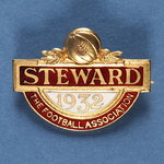 It's an F.A. Stewards badge. Stewards for F.A. (mostly Wembley) matches (eg England games and the FA Cup Final, Amateur Cup Final etc)would have been given it to wear in the days long before big flourescent yellow coats were the uniform.